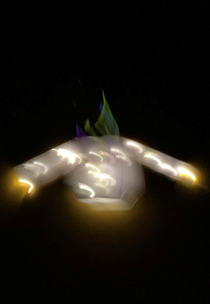 Billedskoleeleverne har derfor skabt 12 hvide papirskjorter med inspiration fra Peter Callesens papirværker. Alle skjorter har et fælles udgangspunkt, men er blevet gjort individuelle gennem personlige motiver som eleverne hver især har klippet i dem. Gennem en fotografisk teknik har eleverne arbejdet med lightpainting.